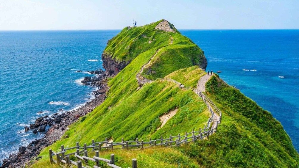 An iconic coastal landmark on the Shakotan Peninsula, known for its towering 80-meter cliffs and the stunningly clear “Shakotan Blue” waters of the Sea of Japan. Walk along the coastal trail to the cape’s end, where you can admire Kamui Rock, the scenic lighthouse, and sweeping panoramic ocean views.