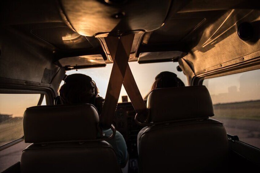 You’ll be seated comfortably aboard a private Cessna 172 aeroplane, taking in shimmering waters while preparing for the perfect moment. We make it flexible, so you can pop the question over the headset while soaring above Lake Victoria or wait until you’re back on the ground next to your dramatic “Marry Me” banner.