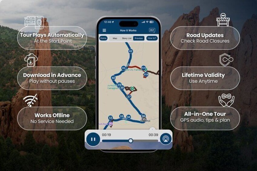 - Travel worry-free: Use the tour app anytime, on any day, and over multiple days. Start and pause the tour whenever you like, taking breaks and exploring side excursions at your own pace. Skip anything you don’t care about or explore bonus content for everything that interests you