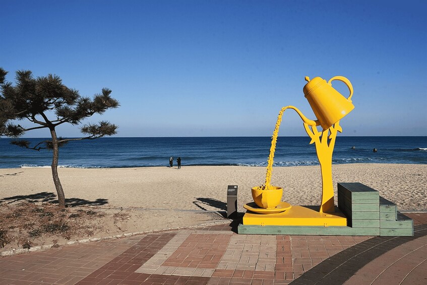 Afterwards, stroll along Anmok Beach, also known as Gangneung Coffee Street, and indulge in the ultimate coffee lover's paradise. Sip on freshly brewed delights as you soak up the seaside charm and vibrant energy of this bustling coastal gem. Get ready to experience the perfect blend of art, culture, and coastal beauty on this unforgettable journey through Gangneung!