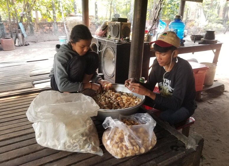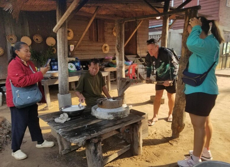 Your first stop is Uncle Chea’s family. Here, you'll learn the art of making fresh rice noodles, a beloved tradition passed down through three generations. You’ll have the chance to taste these noodles and experience the true flavours of Cambodian food and culture in this charming village.