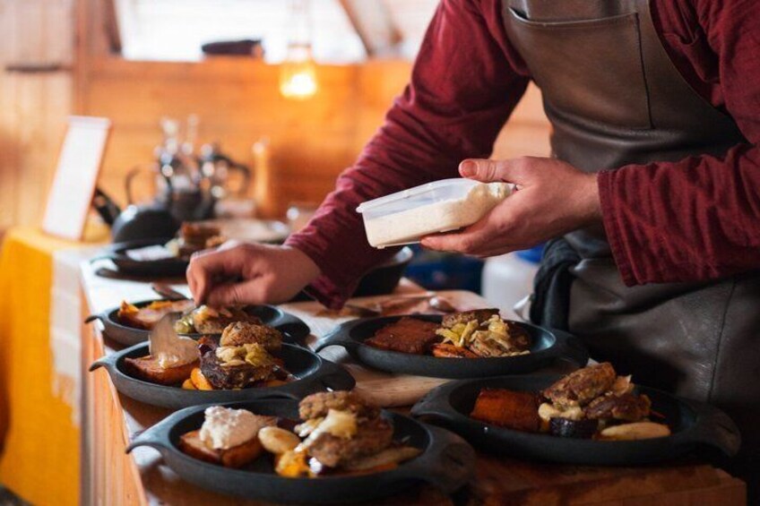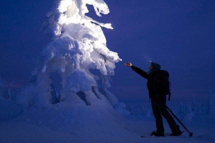 Skiing in Riisitunturi National Park at Night Wilderness Dinner
