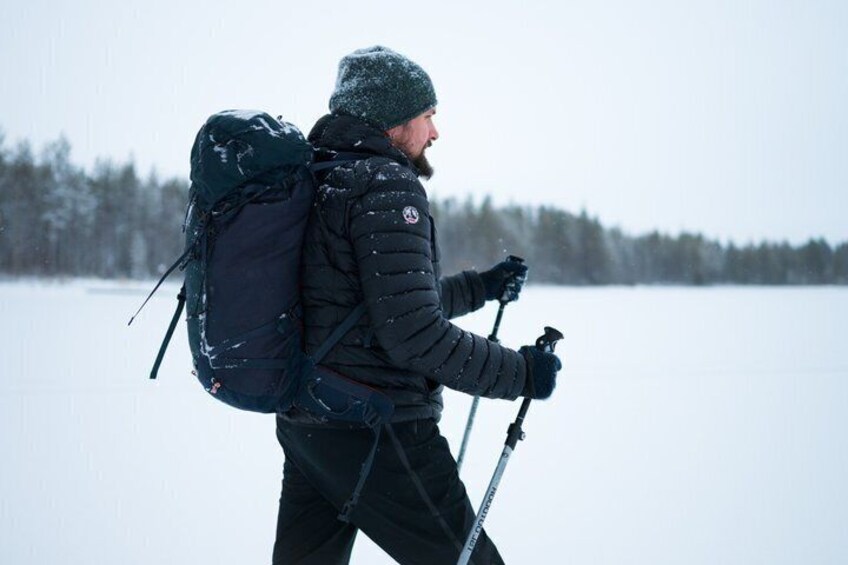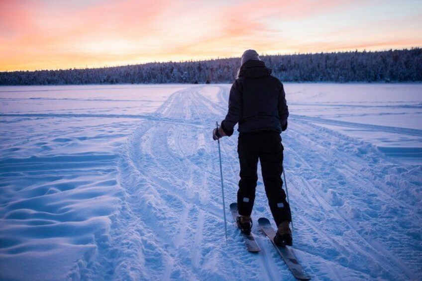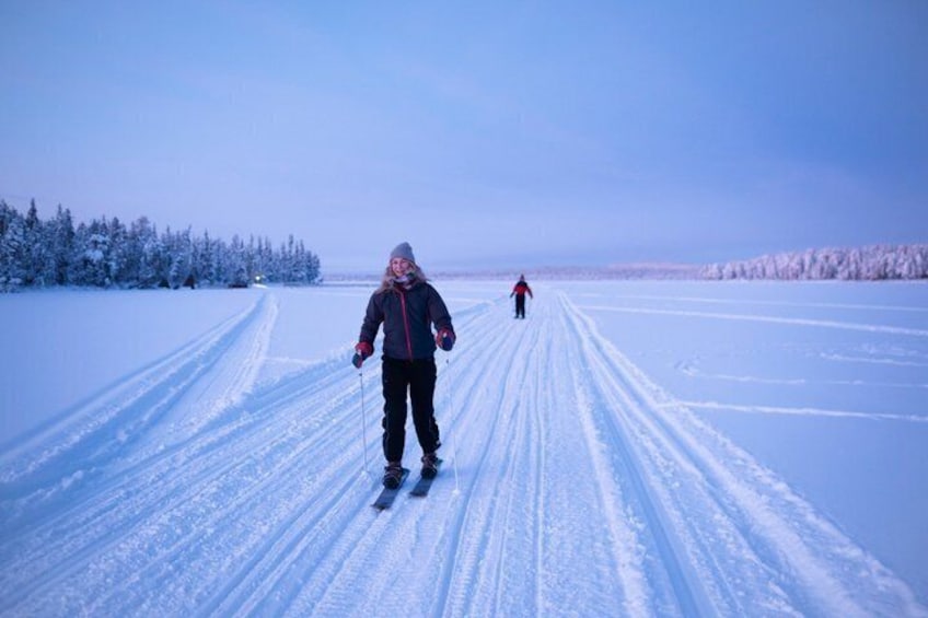 Skiing in Ruka Kuusamo on a Frozen Lake and Wilderness Lunch
