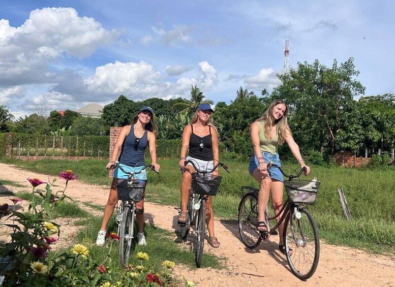 Embark on a journey through rural Cambodia with our Small Group Countryside Sunset Bike Tours. Led by passionate local guides boasting over 20 years of experience, you'll cycle along peaceful dirt roads, engage with friendly villagers, and delve into traditional Khmer farming practices. Savour authentic street food and desserts, culminating your adventure with a breathtaking sunset view, drink in hand. Many travellers consider this the highlight of their Cambodian visit!