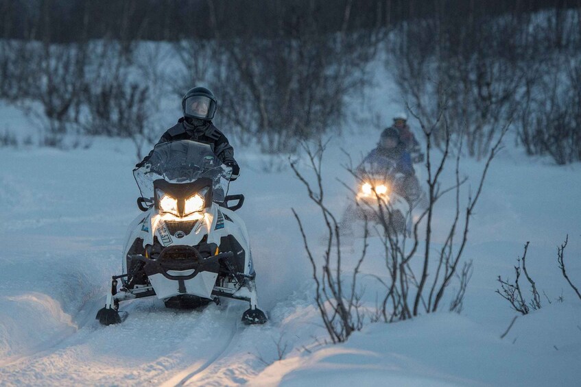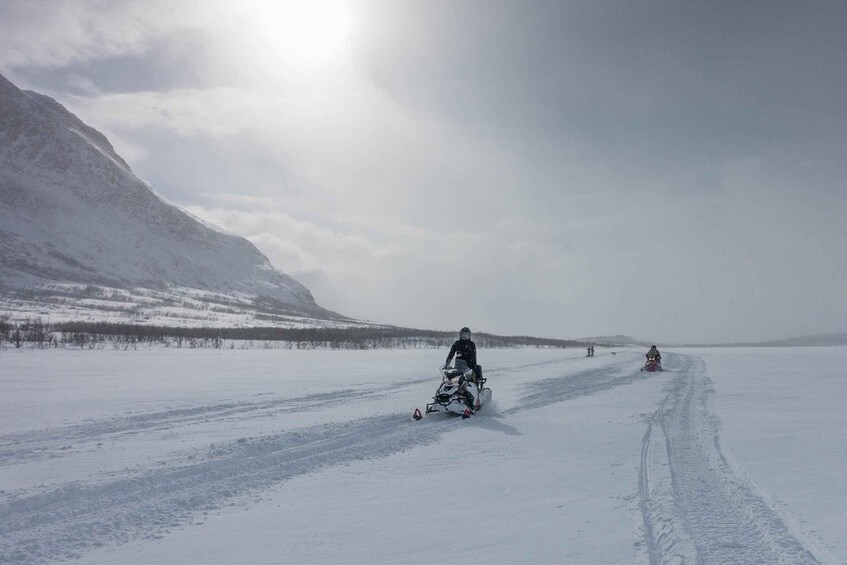 Activities in Abisko is your gateway to an Arctic experience that will leave you awe-struck and craving for more. Brace yourself for an exciting journey through pristine snowy areas, surrounded by majestic mountains and frozen lakes. Explore vast frozen landscapes and follow scenic trails through the Arctic wilderness and Abisko National Park. Experience the thrill of gliding through powdery snow on our guided snowmobile trip, where our experienced guides will ensure your safety while providing you with an unforgettable adventure.