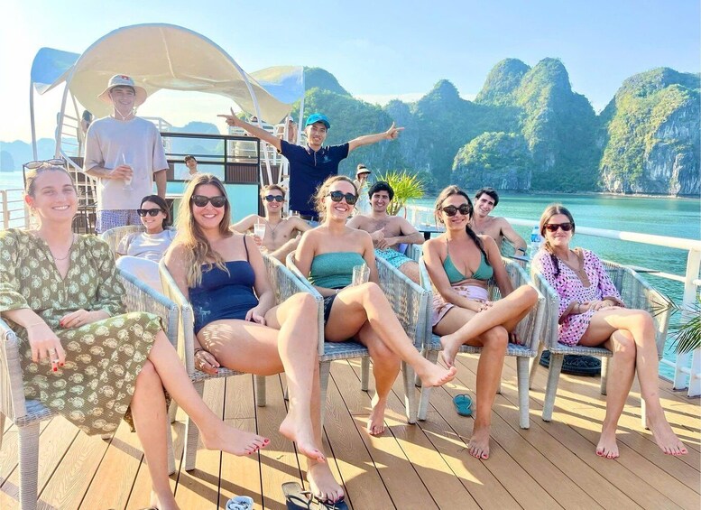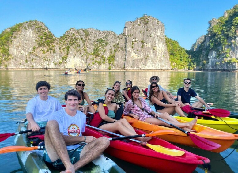Embark on a day trip from Hanoi to Cat Ba Island and Lan Ha Bay. Enjoy a luxury cruise with spacious areas, a chill rooftop bar, two restaurants, and a water slide floating swimming pool. Ignite your adventurous spirit with kayaking, swimming, and more.
