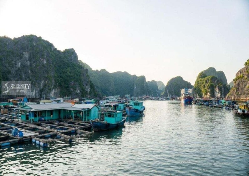 The boat begins its journey back to Beo Pier. Relax on the top deck with a cup of ordered drink. A small sunset party is served with fresh fruit, biscuits, and tea. Return to Beo Dock, say goodbye to Lan Ha Bay and the Serenity Cruise team, and get on the bus back to Hanoi. Arrive at Hanoi Old Quarter, ending an unforgettable journey.