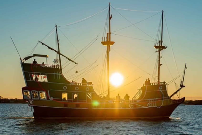 Fun for all ages! Come experience the laid-back island vibes of Black Raven’s Tropical Sunset Cruise, an afternoon trip inspired by the sights and sounds of the Caribbean! Feel the sea breeze in your hair as you sip on a delicious Bahama Mama cocktail, or any of your favourite drinks from our fully stocked bar. Enjoy the sounds of your favourite beach hits by Jimmy Buffet, Bob Marley, and more! Place your own song request with any of the pirates. Guests will be treated to a 2-hour sunset cruise on the Matanzas River sailing north past historic St. Augustine towards Vilano Beach. Experience views from a different perspective through the Bridge of Lions, past the Castillo de San Marcos, The Great Cross, Vilano Bridge and Pier, the St. Augustine Inlet, St, Augustine Lighthouse, and through Salt Run where pods of dolphins are out during feeding time. Keep an eye on the treeline for bald eagles! Take a pirate ship ride into paradise, only on the Black Raven!