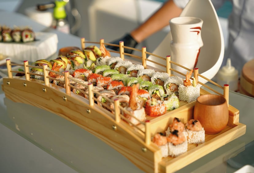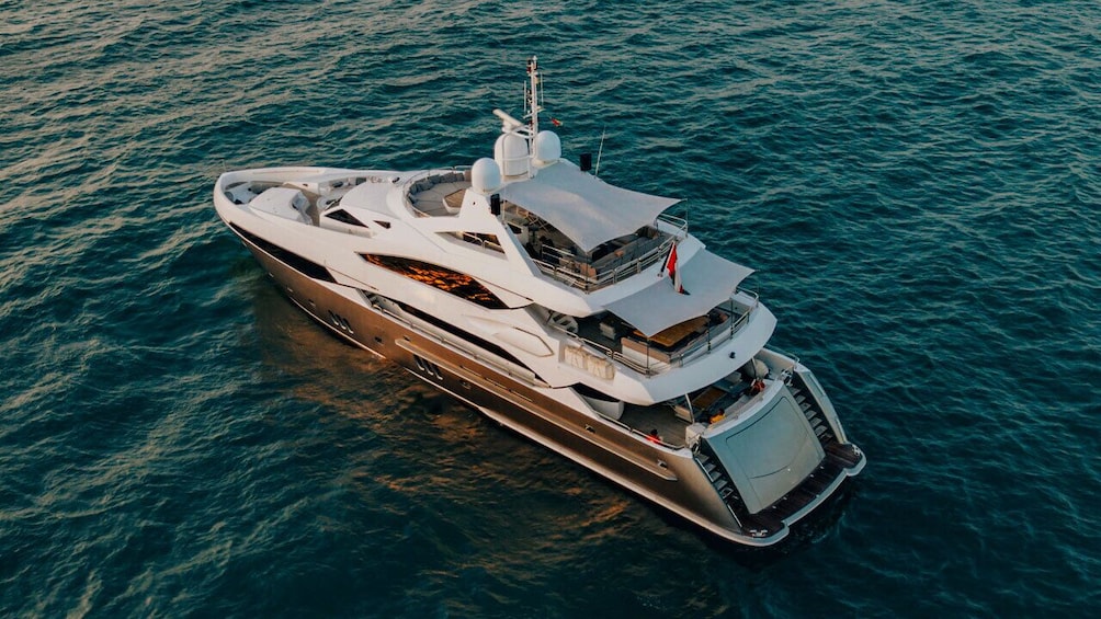 a 40-meter tri-deck Sunseeker superyacht redefining luxury. Enjoy an all-inclusive experience with an Omakase sushi menu, Zen-Med canapés, unlimited premium drinks, free-flowing champagne, and handcrafted cocktails for the ultimate indulgence.