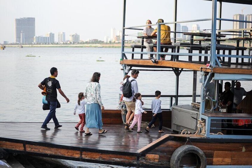 Duration: 2 hours: Cruise on the Mekong with live traditional Khmer music. See the sunset or city lights. Full bar and kitchen onboard.