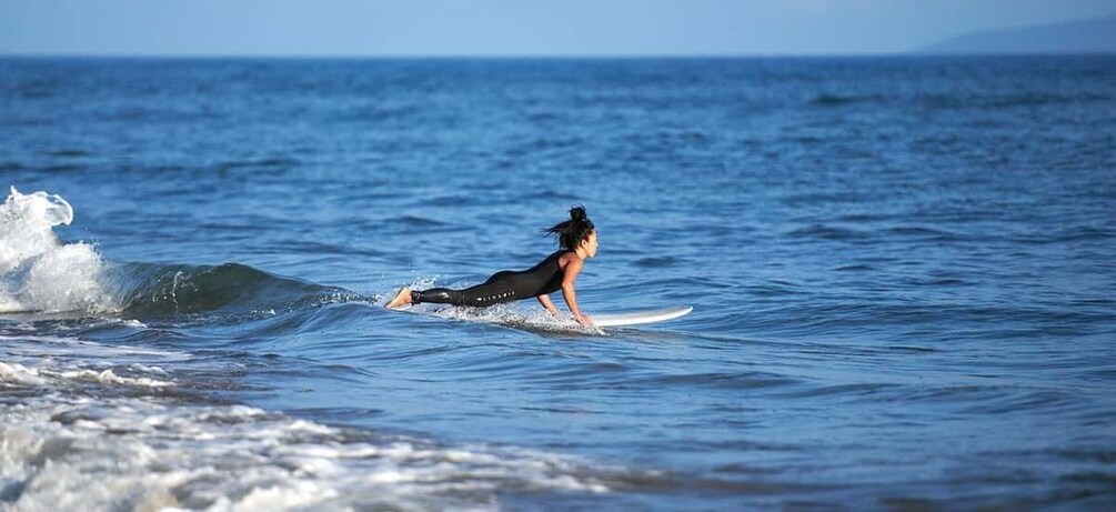 Safety and preparation are the most important components to great surf instruction. For that reason every Jaco surf lesson begins with instruction on the basics of surfing, water safety, surfing etiquette, wave dynamics, paddling, wave position, stretching and standing up on the board.