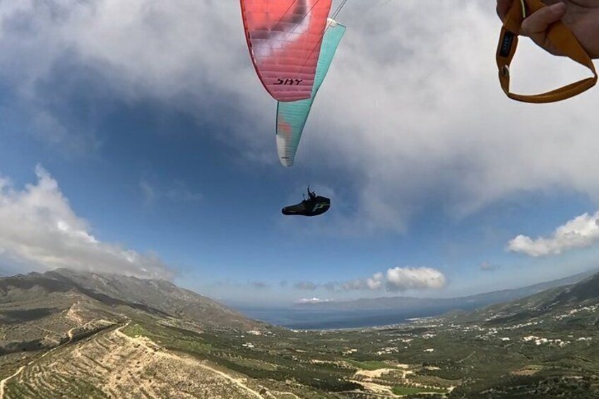 Tandem Paragliding in Crete: The flight lasts 20 minutes with the professional guidance of an instructor