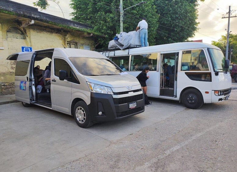 Tikal: From your Hotel in Tikal to San Pedro Ambergris Belize Bus + Ferry