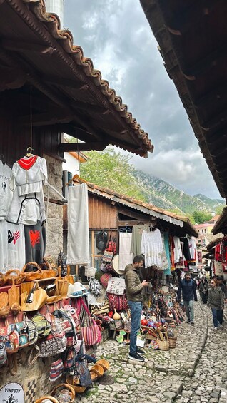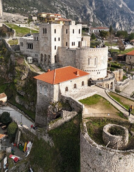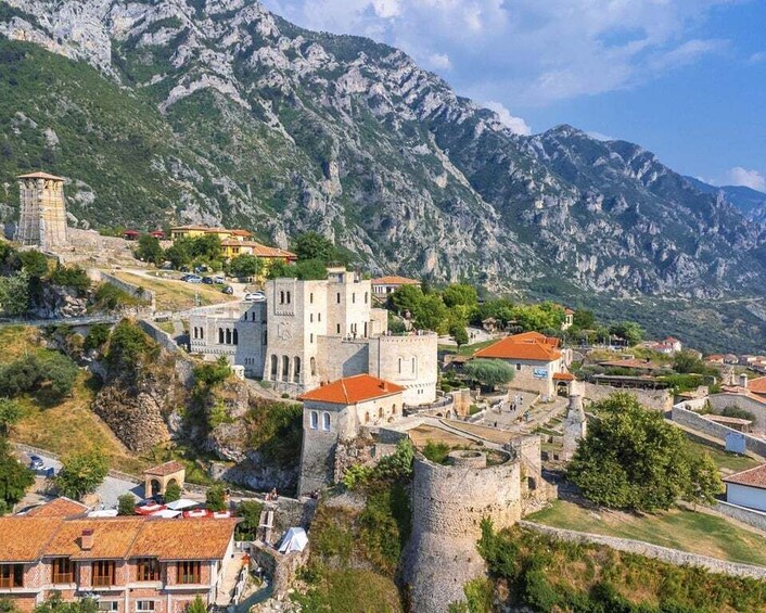 As you step through the gates of Kruja Castle, you'll find yourself transported to a bygone era of medieval grandeur. Your journey begins with a stroll along the imposing stone walls, offering breathtaking views of the surrounding countryside and the Adriatic Sea in the distance. Inside the castle grounds, you'll discover a rich tapestry of historical landmarks and architectural marvels. Start your exploration at the Skanderbeg Museum, dedicated to the legendary Albanian hero who defended his homeland against Ottoman invasion. Marvel at artefacts, weaponry, and exhibits that chronicle Skanderbeg's epic battles and enduring legacy. Next, venture to the Ethnographic Museum, housed in a traditional Ottoman-era home within the castle walls. Step inside to experience the daily life and customs of Albanian families centuries ago, as you peruse authentic furnishings, clothing, and household items. No visit to Kruja Castle would be complete without a visit to the medieval bazaar, bustling with activity just as it was centuries ago. Lose yourself in a maze of narrow cobblestone streets lined with artisan shops and stalls selling local crafts, textiles, and souvenirs. Immerse yourself in the sights, sounds, and aromas of a vibrant marketplace frozen in time. As you explore further, you'll encounter the remains of ancient buildings, including the medieval tower and the Fatih Sultan Mehmet Mosque, a testament to the castle's complex history under Ottoman rule. Take a moment to reflect in the tranquil courtyard, surrounded by centuries-old stone walls adorned with intricate carvings and inscriptions. Finally, ascend to the highest point of the castle for panoramic views that stretch as far as the eye can see. Gaze out over the terracotta rooftops of Kruja town below, framed by the rugged peaks of the Dajti Mountain range. With its rich history, stunning architecture, and captivating atmosphere, a visit to Kruja Castle promises an unforgettable journey through Albania's storied past. As you bid farewell to this ancient fortress, you'll carry with you memories of a place where time stands still, and history comes to life before your eyes.