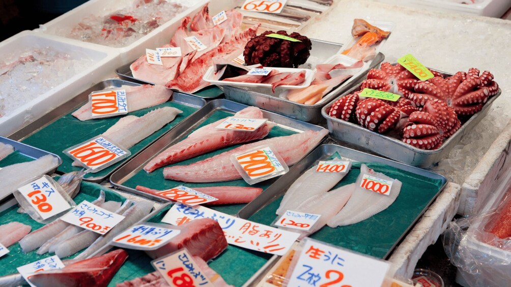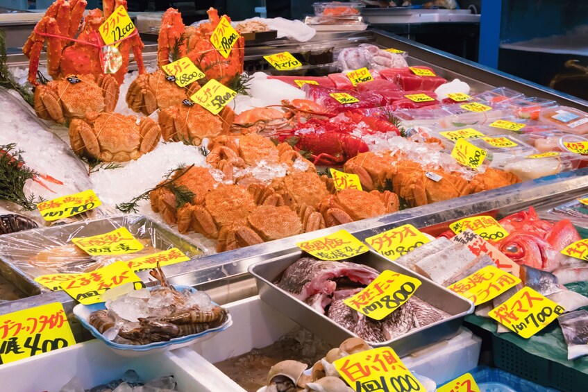 • Taste Tamagoyaki (sweet egg omelette) and fresh seafood skewers (tuna, etc.).