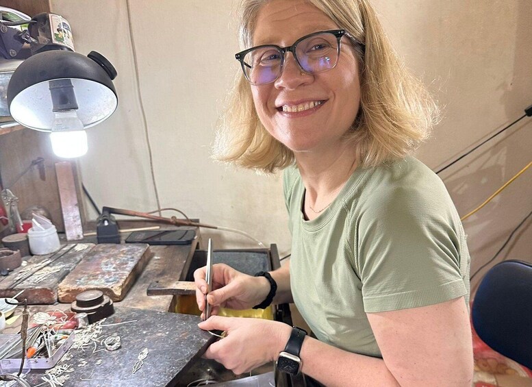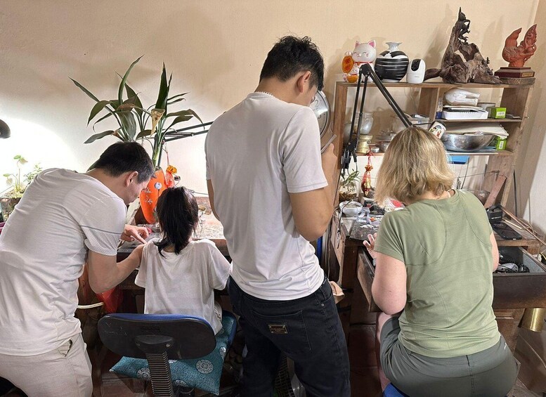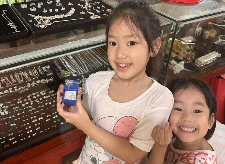 On this trip you will soak in the spirit of one of the most famous and unique jewellery craft village in Vietnam, see the patience, intelligence and creation of silversmiths, and have chance to learn making a silver product yourselves. We will start by learning the village's history and get to know the local host who will teach you how to make silver products, then under host's guidance, you will learn how to make thin silver thread and arrange them to make a beautiful piece of silver. We have a collection of sample for you to choose what to make, either a ring or earrings or bracelet.