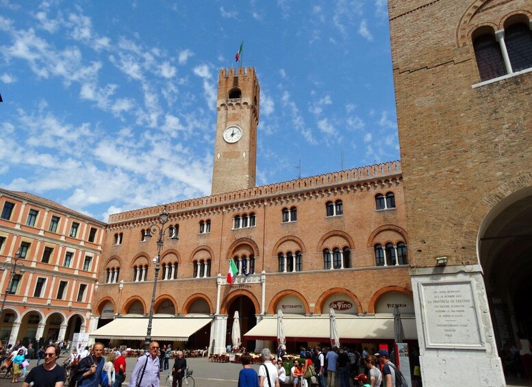 The guided tour of Treviso will take you to the Venetian town famous for its typical culinary products, from Prosecco to radicchio up to tiramisu, the famous dessert that seems to have originated right here. Our visit starts from the largest church in the town, the Temple of San Nicolò, one of the most important examples of Gothic style in Italy with large naves and walls decorated with precious frescoes, restored after the bombing of the Second World War.