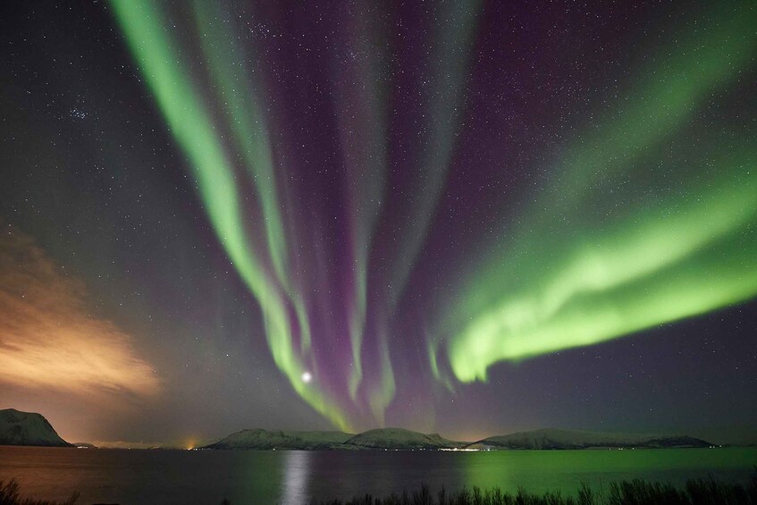 You'll be picked inside reception of Radisson Blu hotel in Tromso at 19:00 hrs. Your guide will take you to our office where we will give you the briefeing and the suits. Then we will set out for a 6-hour excursion in search of this beautiful natural phenomenon. One night, this might take you to the Finnish border while another evening the forecast will show clear skies on the Fjords at the west of Tromsø—you'll be taken where the chances for clear skies are highest. Around Tromsø, if you can see stars in the sky, you can also see the Northern Lights.