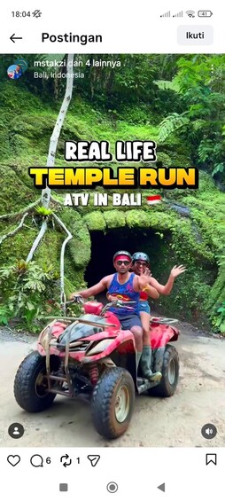 Valid for 1 Hour, Ubud: quad bike Adventure with Cretya Sunset Jungle Club Entry in Multilingual