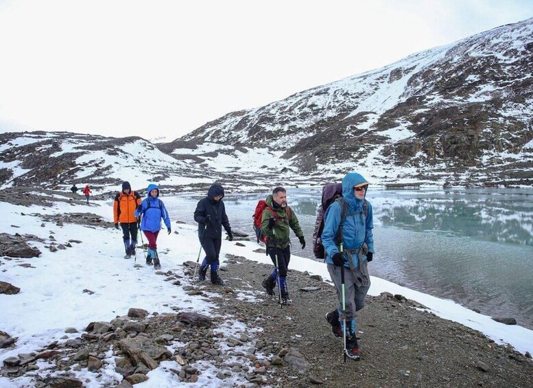 After a 2.5-hour climb, you’ll emerge from the forest and tackle the final steep slope leading to the Laguna de los Témpanos. Surrounded by snowy peaks and the glacier, this mountain setting offers awe-inspiring views. Here, you'll enjoy a gourmet lunch, engaging conversations, and spectacular scenery before retracing your steps back to the starting point.