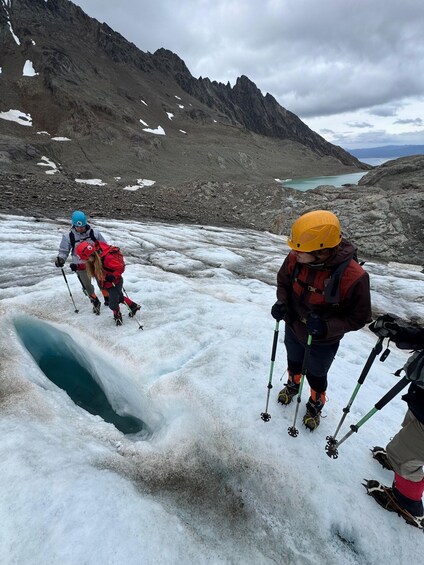 Embark on an unforgettable trekking adventure to the Vinciguerra Glacier, a natural wonder in Tierra del Fuego. This full-day hike takes you through diverse landscapes, including wetlands, native Andean Patagonian forests, and rugged mountain terrain. Witness the glacier’s breathtaking ice caves, cracks, and sinkholes, and learn about its constant retreat due to climate change.