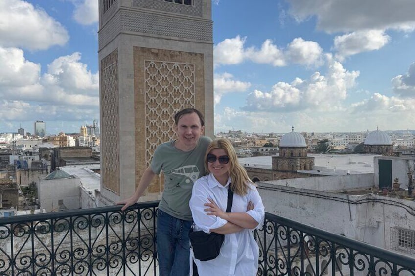 As we enter the Medina of Tunis, a UNESCO World Heritage Site, we’ll step into a world full of history, culture, and everyday life. We’ll wander through its narrow streets and explore traditional markets (souks), where artisans still craft perfumes, leather, and jewellery. Along the way, we’ll admire beautiful mosques, historic madrasas (Islamic schools), and hidden shrines that tell stories of the city's spiritual and architectural heritage. To soak it all in, we’ll take a relaxing break at a charming local café — the perfect moment to rest, chat, and enjoy the atmosphere just like the locals do.