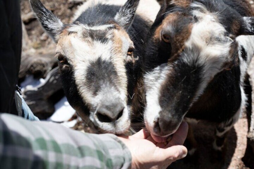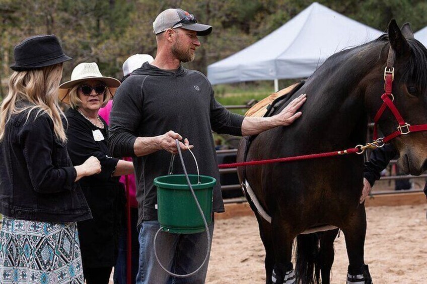 - Note on wheelchairs or other assistive devices: The path to the round pen is very steep. We are able to transport you and your wheelchair or other assistive device in our car. Our porta-potty is unfortunately not wheelchair accessible. Please let us know if anyone in your party uses a wheelchair or other mobility device so we are prepared to assist you.
