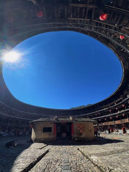 Visit Yuchang Lou, a tulou with over 700 years of history. Its pillars lean slightly from the second floor upwards, yet they have remained stable through multiple earthquakes. The ground floor kitchen contains 22 wells—the highest number in any Fujian tulou—ensuring convenient access to water. This remarkable structure demonstrates the unique combination of Hakka architectural wisdom and family organisation.