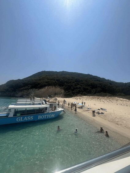 Transfer by coach from our office or pick up point to the port and cruise north along the east coast of the island on a fast glass-bottom boat. During the cruise, you can admire the beaches of Xigia and the beautiful landscapes surrounding them. Also like the small island of Mikro Nisi on the way to the Blue Grotto.We will visit the Blue Caves from the inside, admiring the beautiful shades of blue water.