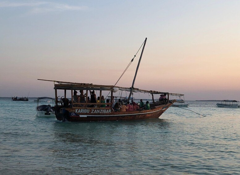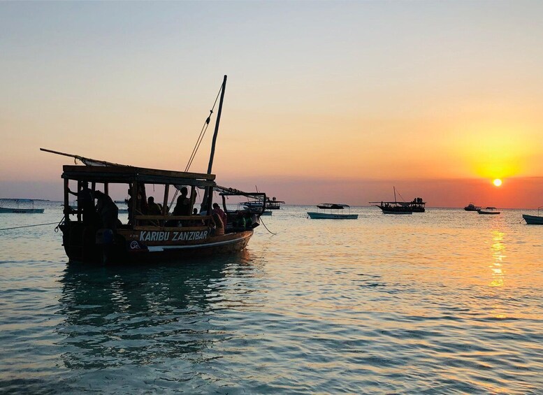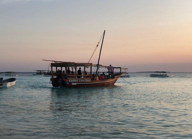 This option is suitable for the guests from all the hotels in the North-East region. From PWANI MCHANGANI, KIWENGWA, MATEMWE, PONGWE, UROA BAY. Watch the sun go down from a traditional dhow, sip on sparkling drinks, fresh fruits & enjoy traditional musics